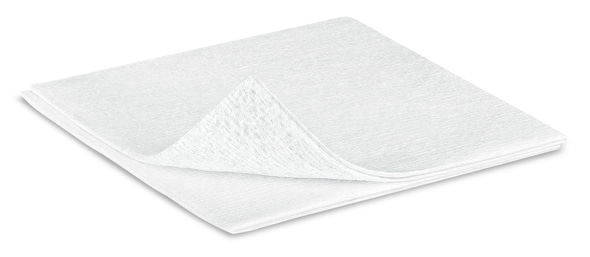 本品採用 70% 黏膠纖維(viscose)與 30% 聚酯纖維混合製成,不含黏合劑及螢光增白劑,從成分上降低對皮膚的刺激風險,即便用於嬌嫩或受損肌膚也更為溫和;同時為紗布狀無紡布結構,搭配 6 層折疊設計,質地柔韌且不易掉絮,移除時不會在傷口或皮膚表面殘留纖維,必要時可展開使用,以覆蓋更大面積的護理區域。